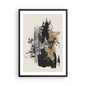 Plakát v černém rámu - Abstraktní kompozice v odstínech černé a zlaté - 50x70cm - Kompozice s vášní - Moderní nástěnná dekorace do obývacího pokoje a ložnice ARTTOR