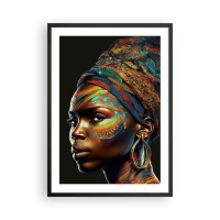 Plakát v černém rámu - Portrét ženy v barevném šátku a etnickém make-upu - 50x70cm - Africká královna - Moderní nástěnná dekorace do obývacího pokoje a ložnice ARTTOR
