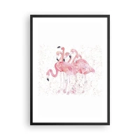 Plakát v černém rámu - Skupina růžových plameňáků na bílém pozadí - 50x70cm - Růžový ansámbl - Moderní nástěnná dekorace do obývacího pokoje a ložnice ARTTOR