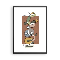 Plakát v černém rámu - Abstraktní kompozice čar a barevných tvarů. - 50x70cm - Abstrakce, která stojí za úsměv - Moderní nástěnná dekorace do obývacího pokoje a ložnice ARTTOR