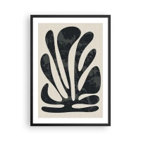 Plakát v černém rámu - Abstraktní černá rostlina na béžovém pozadí - 50x70cm - Mnohoprstá abstrakce - Moderní nástěnná dekorace do obývacího pokoje a ložnice ARTTOR