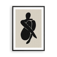 Plakát v černém rámu - Abstraktní postava v póze s rukama omotanýma kolem těla, černobílá ilustrace - 50x70cm - Ve vlastním objetí - Moderní nástěnná dekorace do obývacího pokoje a ložnice ARTTOR