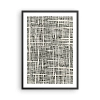 Plakát v černém rámu - Geometrický vzor v černé barvě na světlém pozadí - 50x70cm - Tkaná kompozice - Moderní nástěnná dekorace do obývacího pokoje a ložnice ARTTOR