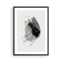 Plakát v černém rámu - Abstraktní kompozice v černých, šedých a zlatých tónech. - 50x70cm - V černé a zlaté - Moderní nástěnná dekorace do obývacího pokoje a ložnice ARTTOR