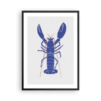 Plakát v černém rámu - Vysoce kontrastní grafika humra v minimalistickém stylu - 50x70cm - Elegantní modrý humr - Moderní nástěnná dekorace do obývacího pokoje a ložnice ARTTOR