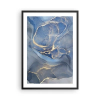 Plakát v černém rámu - Abstraktní skvrny v odstínech modré a zlaté - 50x70cm - Zlatý prach - Moderní nástěnná dekorace do obývacího pokoje a ložnice ARTTOR