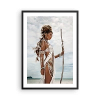 Plakát v černém rámu - Stylizovaná postava ženy v tropickém prostředí - 50x70cm - Královna tropů - Moderní nástěnná dekorace do obývacího pokoje a ložnice ARTTOR