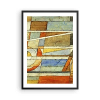 Plakát v černém rámu - Geometrické vzory v odstínech oranžové a modré - 50x70cm - Kubismus na stavbě - Moderní nástěnná dekorace do obývacího pokoje a ložnice ARTTOR
