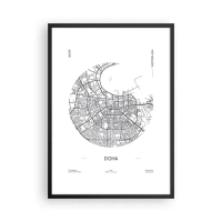 Plakát v černém rámu - Minimalistická černobílá mapa Dauhá - 50x70cm - Anatomie Dauhá - Moderní nástěnná dekorace do obývacího pokoje a ložnice ARTTOR