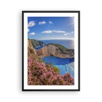 Plakát v černém rámu - Zátoka Navagio na ostrově Zakynthos s útesy a mořem - 50x70cm - Moje velké řecké prázdniny - Moderní nástěnná dekorace do obývacího pokoje a ložnice ARTTOR