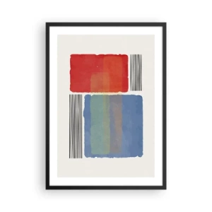Plakát v černém rámu - Abstraktní kompozice s červenými a modrými obdélníky - 50x70cm - Duch a písmeno geometrie - Moderní nástěnná dekorace do obývacího pokoje a ložnice ARTTOR