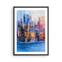 Plakát v černém rámu - Abstraktní panorama města v intenzivních barvách - 50x70cm - Radostná metropole - Moderní nástěnná dekorace do obývacího pokoje a ložnice ARTTOR
