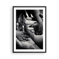 Plakát v černém rámu - Černobílý motiv rukou symbolizujících pouto - 50x70cm - Být člověkem - Moderní nástěnná dekorace do obývacího pokoje a ložnice ARTTOR
