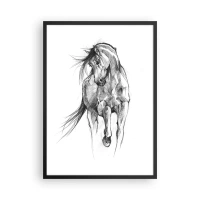 Plakát v černém rámu - Náčrt koně v dynamické póze - 50x70cm - V ladném klusu - Moderní nástěnná dekorace do obývacího pokoje a ložnice ARTTOR