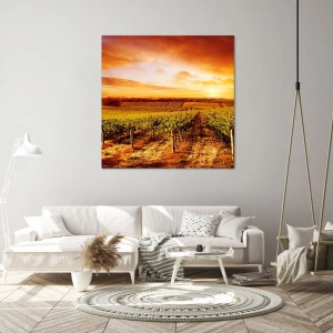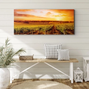 - Tento obraz zobrazuje vinici při západu slunce v teplých nebeských tónech. Dokonalá dekorace pro interiéry inspirované přírodou a harmonií.