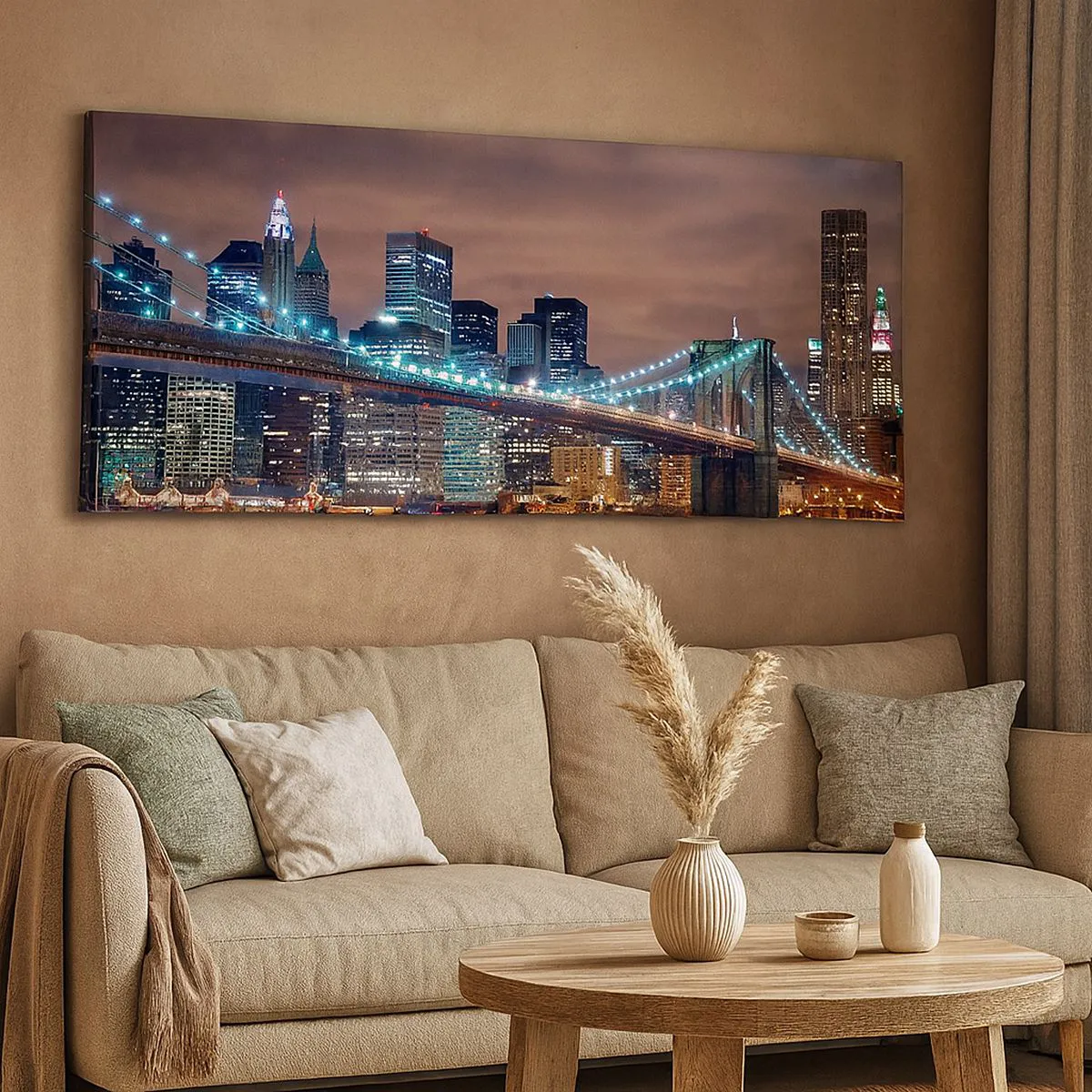 Plátno je nataženo na rám. Strany a hrany jsou potištěny, čímž tvoří pokračování obrazu. Obraz je připravený k zavěšení na zeď. Každý výrobek je vybaven závěsem, který je připevněn k rámu a montážní sadou (šroub + kolík).