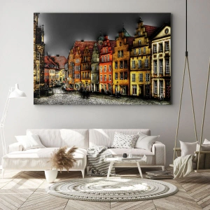 Nástěnný obraz - Chybí jen začarovaný kočár - Barevné činžovní domy na dlážděné ulici v historickém městě