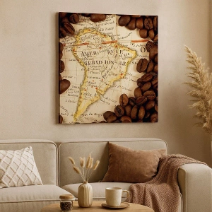 • Mapy světa, káva, Amerika, Gastronomie, mapy světa, cestování, Do kanceláře, Do pracovny, Do jídelny, Do předsíně, Do obývacího pokoje, Do ložnice, Hnědý, Panoramatický