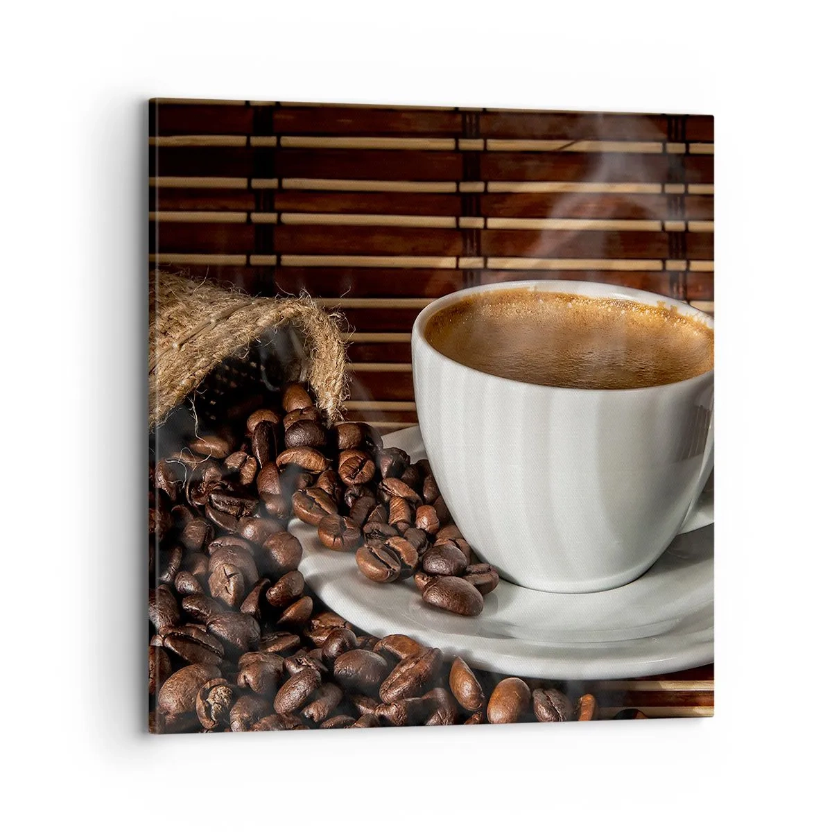 Plátno je nataženo na rám. Strany a hrany jsou potištěny, čímž tvoří pokračování obrazu. Obraz je připravený k zavěšení na zeď. Každý výrobek je vybaven závěsem, který je připevněn k rámu a montážní sadou (šroub + kolík).