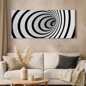- Obraz zobrazuje černobílou spirálu, která vytváří hypnotický efekt. Ideální pro moderní interiéry a minimalistické prostory.