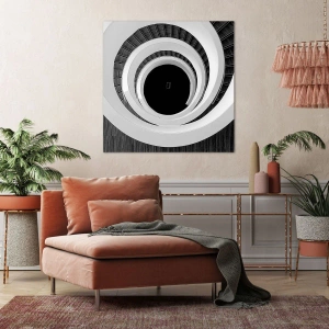 - Minimalistický obraz zobrazující točité schodiště v černé a bílé barvě. Moderní motiv, který dodá eleganci a výraz každému interiéru.