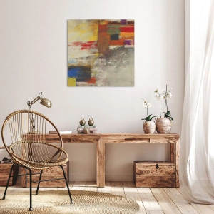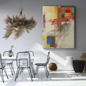 - Obraz zobrazující barevnou abstrakci s geometrickými tvary, ideální do moderních a minimalistických interiérů.