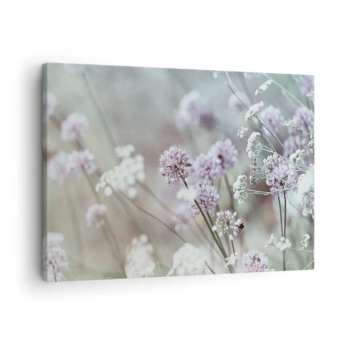 Obraz na plátně - Jemné květiny v pastelových odstínech - 70x50cm - Sladké filigrány bylinek - Moderní nástěnná dekorace do obývacího pokoje a ložnice ARTTOR