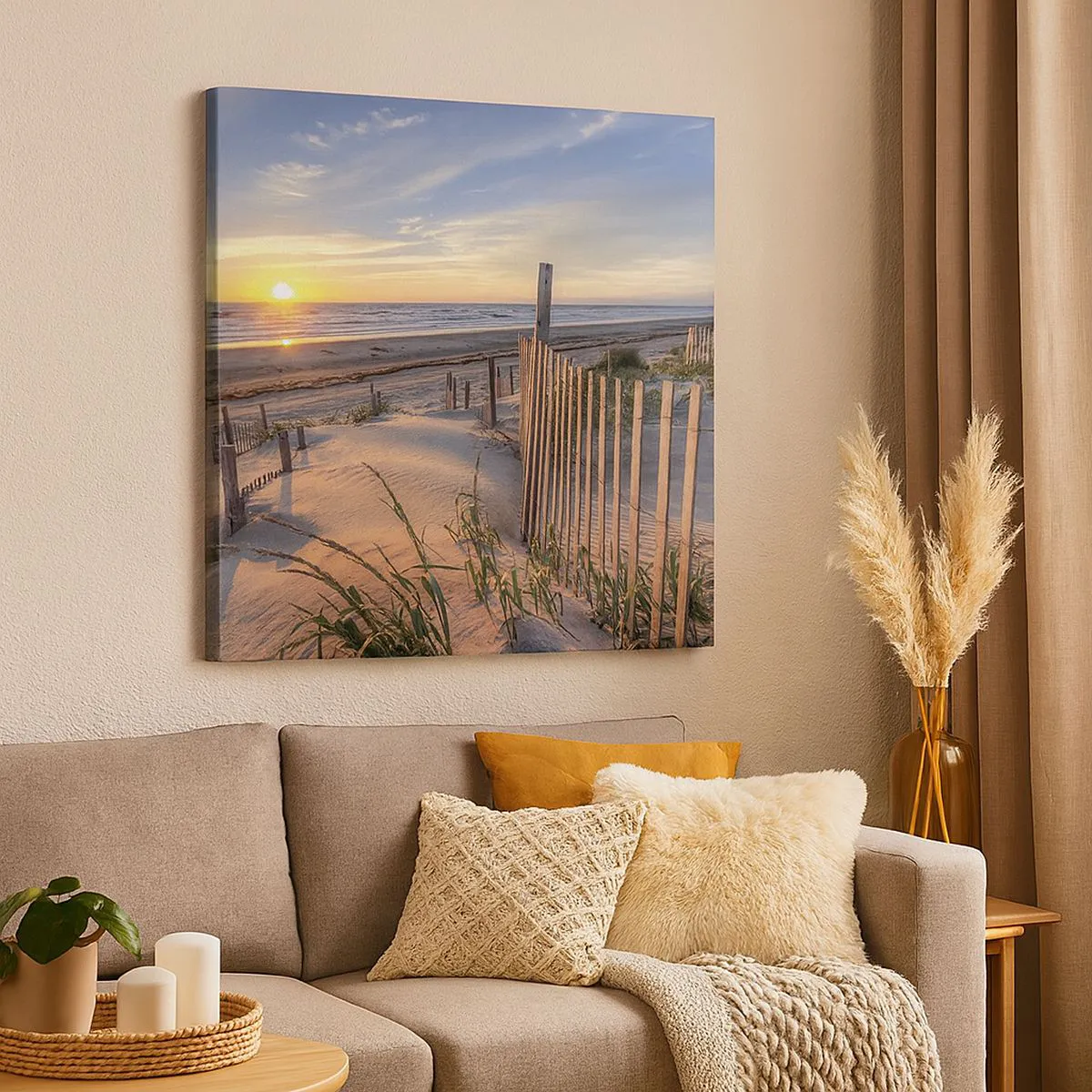 Plátno je nataženo na rám. Strany a hrany jsou potištěny, čímž tvoří pokračování obrazu. Obraz je připravený k zavěšení na zeď. Každý výrobek je vybaven závěsem, který je připevněn k rámu a montážní sadou (šroub + kolík).