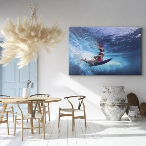 Motiv podvodního světa a dynamické sportovní scény kombinuje krásu přírody s energií aktivity, díky čemuž je tento obraz ideální volbou pro milovníky umění i sportu. Dodává interiérům jedinečný charakter a oživuje prostor.