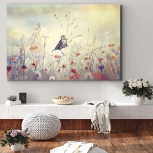 Obraz na plátně - Portrét ptáka s loukou v pozadí - 160x50 cm