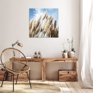 Nástěnné umění - Sluneční a větrné pohlazení - Jemné pampské trávy proti modré obloze s lehkými mraky