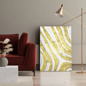 - Tento plátěný obraz o rozměrech 70x50 cm se vyznačuje abstraktními zlatými a bílými liniemi v 3D textuře. Je to výrazný kus dekorace, který dodá moderní a stylový nádech jakémukoli interiéru.