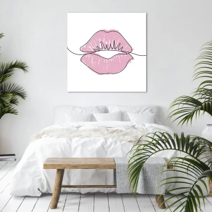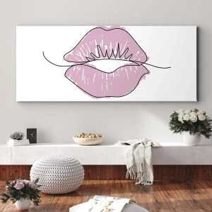 - Tento moderní, minimalistický obraz zobrazuje růžové rty, provedený technikou linkové grafiky. Bezproblémově se hodí do elegantních interiérů. Je to perfektní volba do obývacího pokoje nebo ložnice.