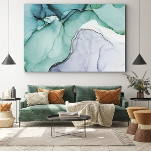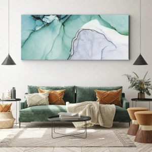 Abstraktní motiv v odstínech tyrkysové a bílé činí z obrazu perfektní volbu pro minimalistické, skandinávské a moderní interiéry. Jeho jemné barvy přinášejí do místností harmonii a klid, což z něj činí ideální doplněk do obývacího pokoje, ložnice nebo kanceláře.