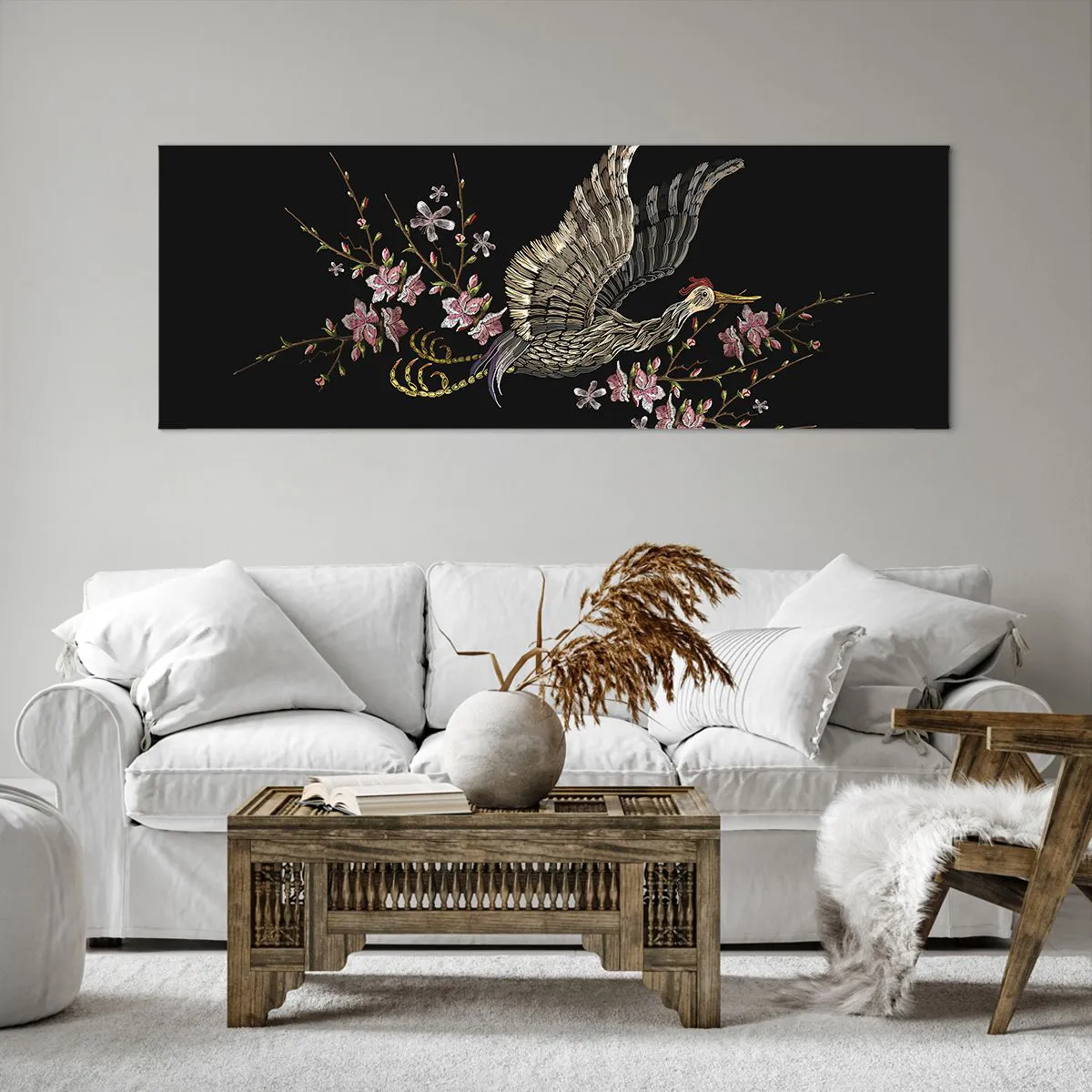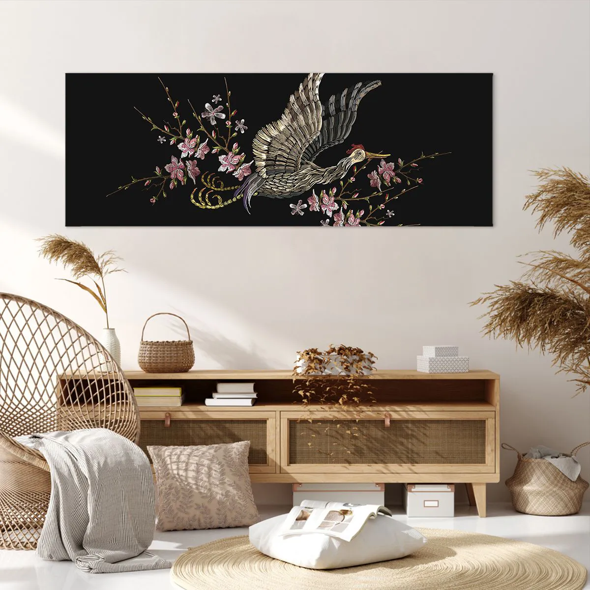 Obraz na plátně - Exotický vyšívaný pták - 140x50 cm