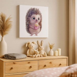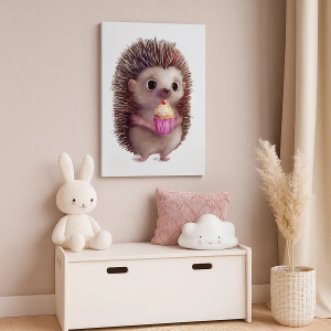 - Tento obraz na plátně zobrazuje rozkošného ježka s košíčkem na bílém pozadí. Je perfektním doplňkem do dětského pokoje nebo jakéhokoli prostoru, který potřebuje teplý a útulný nádech.