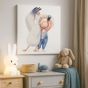 „Plán velké cesty“ je unikátní plátěný obraz o rozměrech 70x50 cm, který zobrazuje okouzlující scénu dítěte s pelikánem a dalekohledem v ruce. Tato pohádková ilustrace vyzařuje teplo a radost a přenáší nás do světa fantazie a přátelství. Jemné barvy a delikátní grafický styl dělají z tohoto obrazu vynikající volbu do dětských prostor, jako jsou dětské pokoje, školky nebo herny.