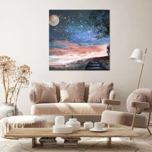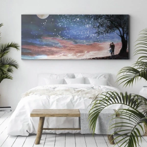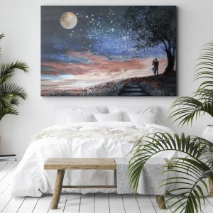 Nástěnné umění - Hvězdná podívaná - Romantická scéna páru za úplňku