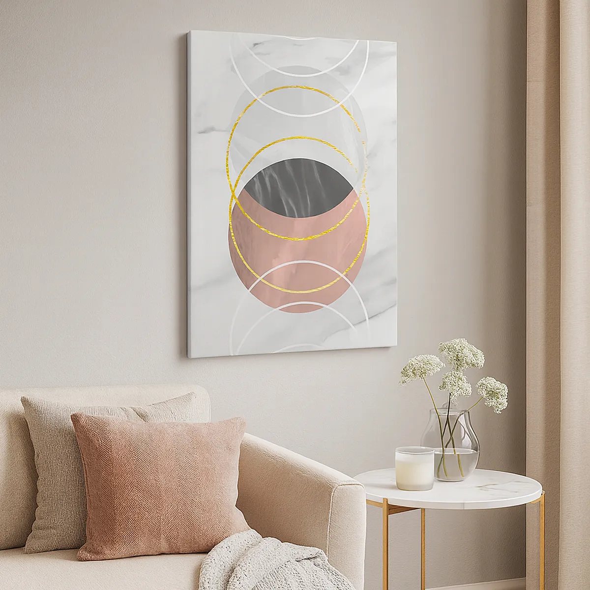 Plátno je nataženo na rám. Strany a hrany jsou potištěny, čímž tvoří pokračování obrazu. Obraz je připravený k zavěšení na zeď. Každý výrobek je vybaven závěsem, který je připevněn k rámu a montážní sadou (šroub + kolík).