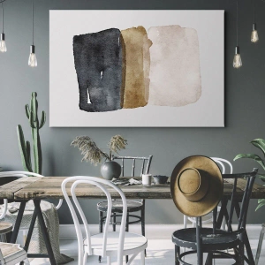 - Obraz zobrazuje tři obdélníky v zemitých tónech na světlém pozadí. Minimalistická kompozice dodá eleganci a harmonii každému interiéru.