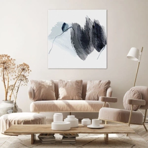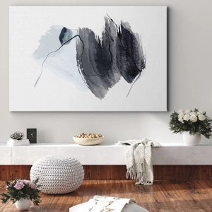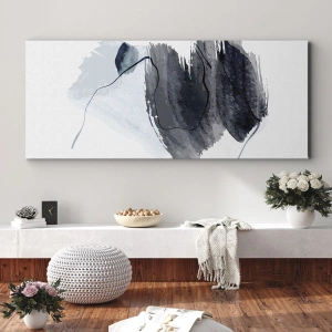 - Abstraktní kompozice v odstínech šedé a modré, symbolizující pohyb a harmonii. Ideální dekorace do moderních a minimalistických interiérů.