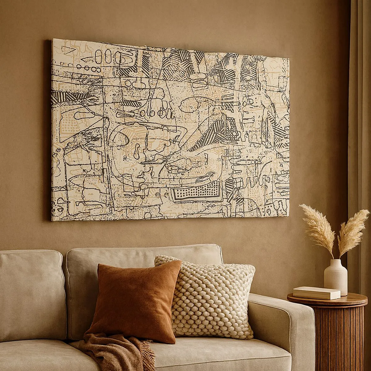 - Abstraktní obraz s liniemi a vzory na béžovém pozadí. Umělecká a decentní kompozice, ideální pro moderní a minimalistické interiéry, s důrazem na styl a harmonii.
