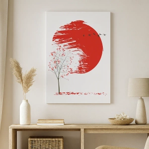 Nástěnný obraz - Znáte tuto zemi? - Červený kruh a strom v japonském stylu