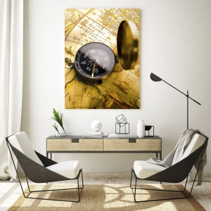 Motiv mapy a kompasu symbolizuje cestování, dobrodružství a zamyšlení nad světem a jeho rozmanitostí. Tento obraz vnáší do interiéru harmonii, inspiraci a jedinečnou atmosféru, přitahuje pozornost a povzbuzuje k zamyšlení nad objevováním nových obzorů.