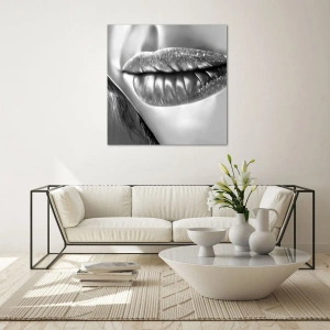 - Monochromatický obraz zobrazující smyslné ženské rty v měkkém světle. Ideální jako elegantní doplněk do moderního interiéru.