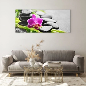 Nástěnný obraz - V klidné rovnováze - Orchidej, černé kameny a bambus v klidném aranžmá
