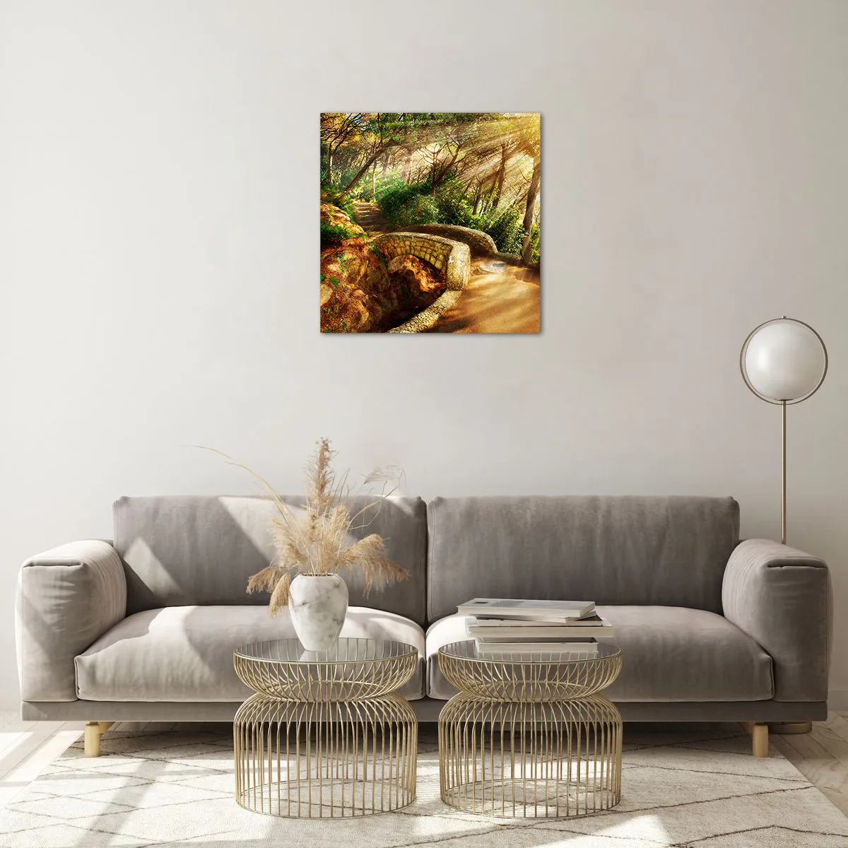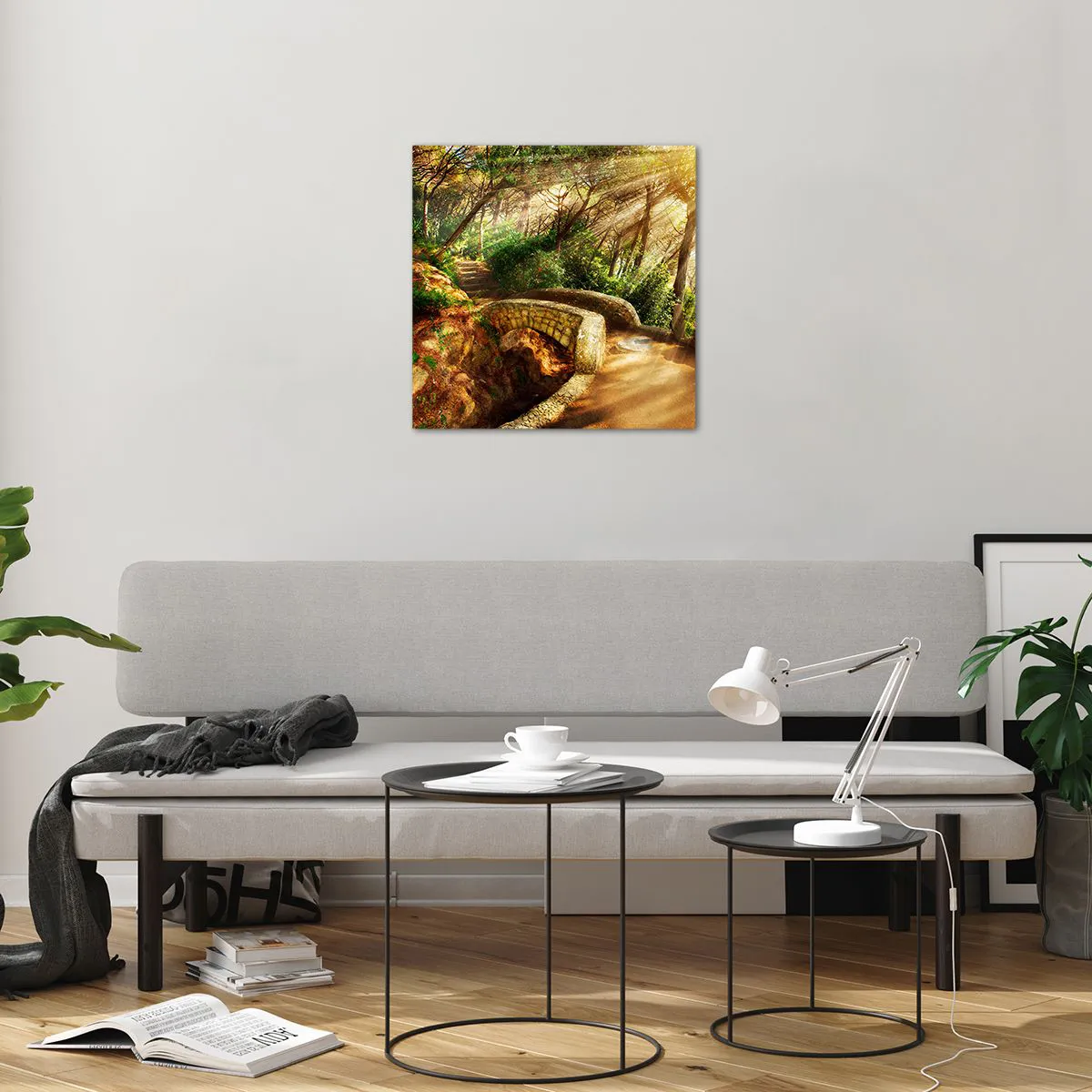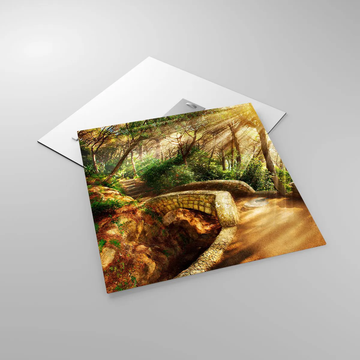 Obraz na skle - Přímo z můstku v pohádkovém lese - 50x50 cm