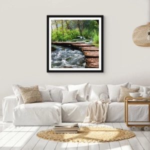 - Plakát zobrazuje dřevěný most přes zurčící potok, obklopený zelení. Je to perfektní dekorace, která vnese klid a harmonii do interiérů, jako jsou obývací pokoje, ložnice nebo kanceláře.