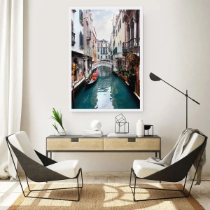 Plakát - Benátská krajina s gondolou a můstkem - 70x50 cm