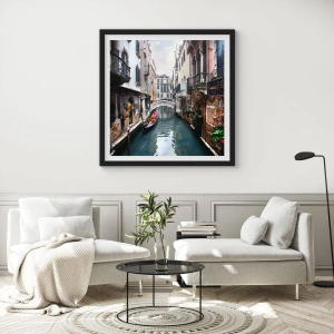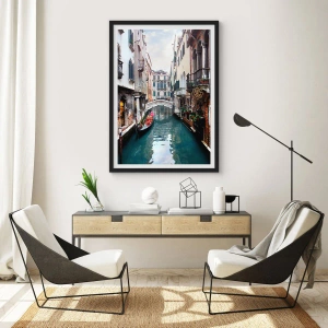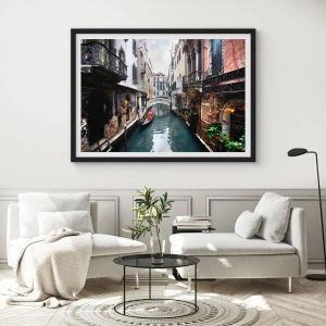 Plakát v černém rámu - Benátská krajina s gondolou a můstkem - 70x100 cm